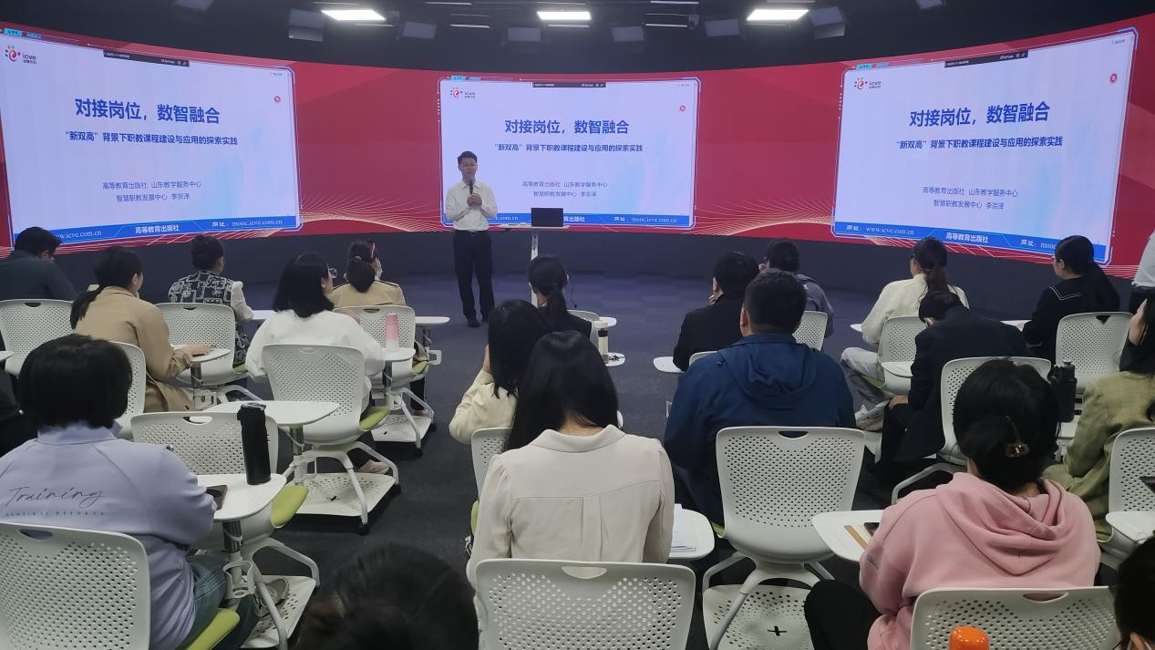 李宗泽以《对接岗位,数智融合》为题,详细解读了教育数字化背景下,职业院校课程建设存在的问题及解决方法,并对国家职业教育智慧教育平台的应用进行了介绍。