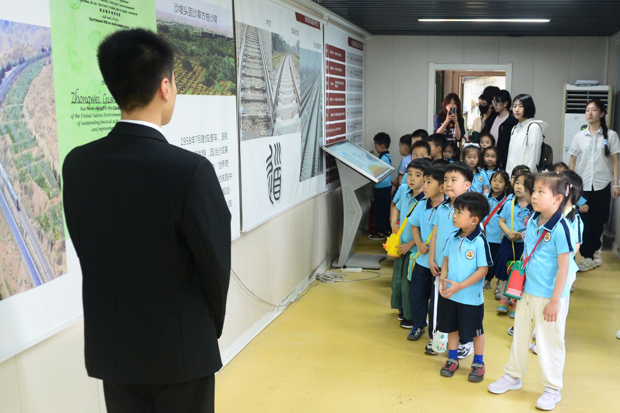 活动中,小朋友们在老师和学生志愿者们的悉心引导下,参观了轨道交通实验实训中心、动车组机械师实训室、“车同轨”铁路技术史馆。