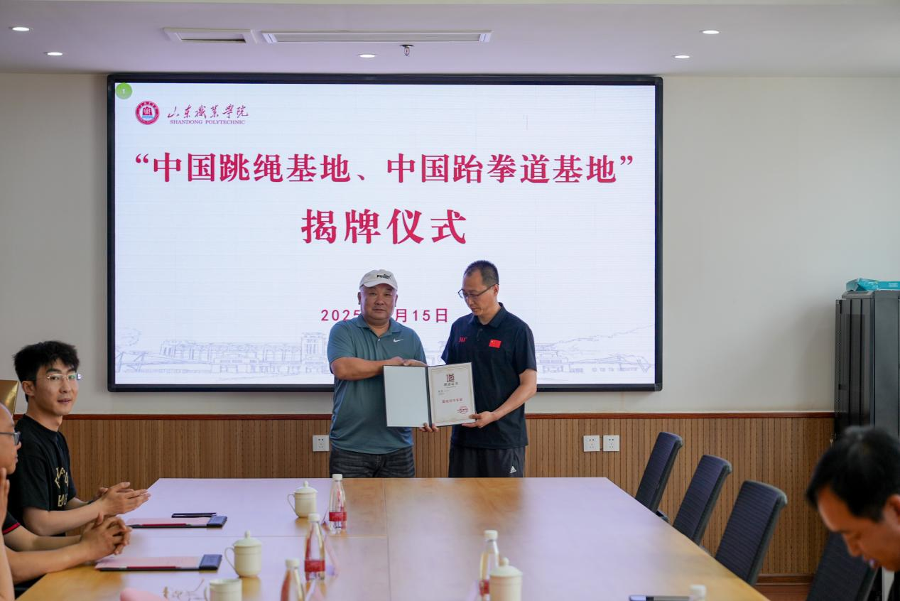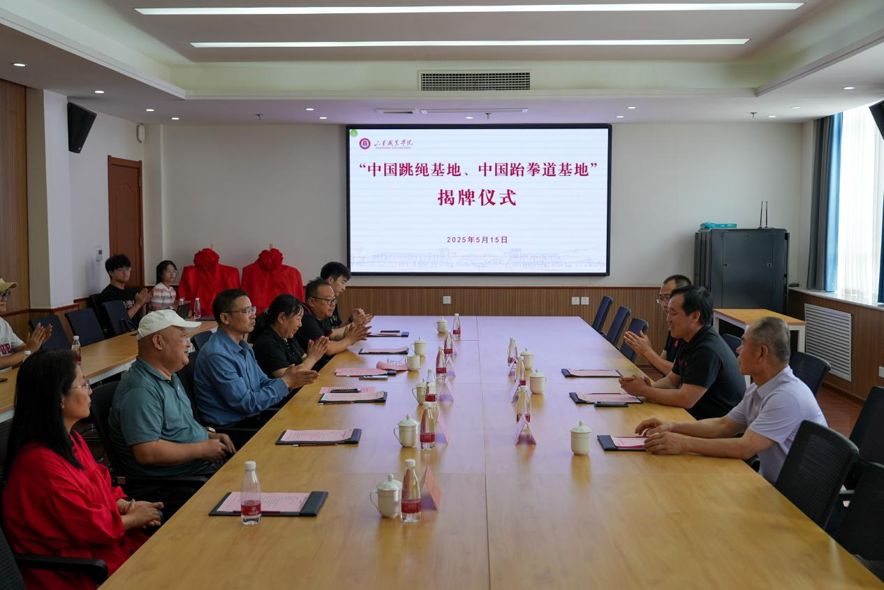 5月15日,“中国跳绳基地”“中国跆拳道基地”揭牌仪式在伟德南楼二楼会议室举行。中国少数民族体育协会跳绳运动委员会会长(兼山东省跳绳协会会长)李文记、山东省人力资源和社会保障厅原二级巡视员王成吉、山东省体育中心党委副书记杨刚、中国少数民族体育协会跳绳运动委员会监事长(兼山东省跳绳运动协会秘书长)丛建筑,伟德副院长张少飞出席活动。仪式由体育美育教学部主任国翠香主持。