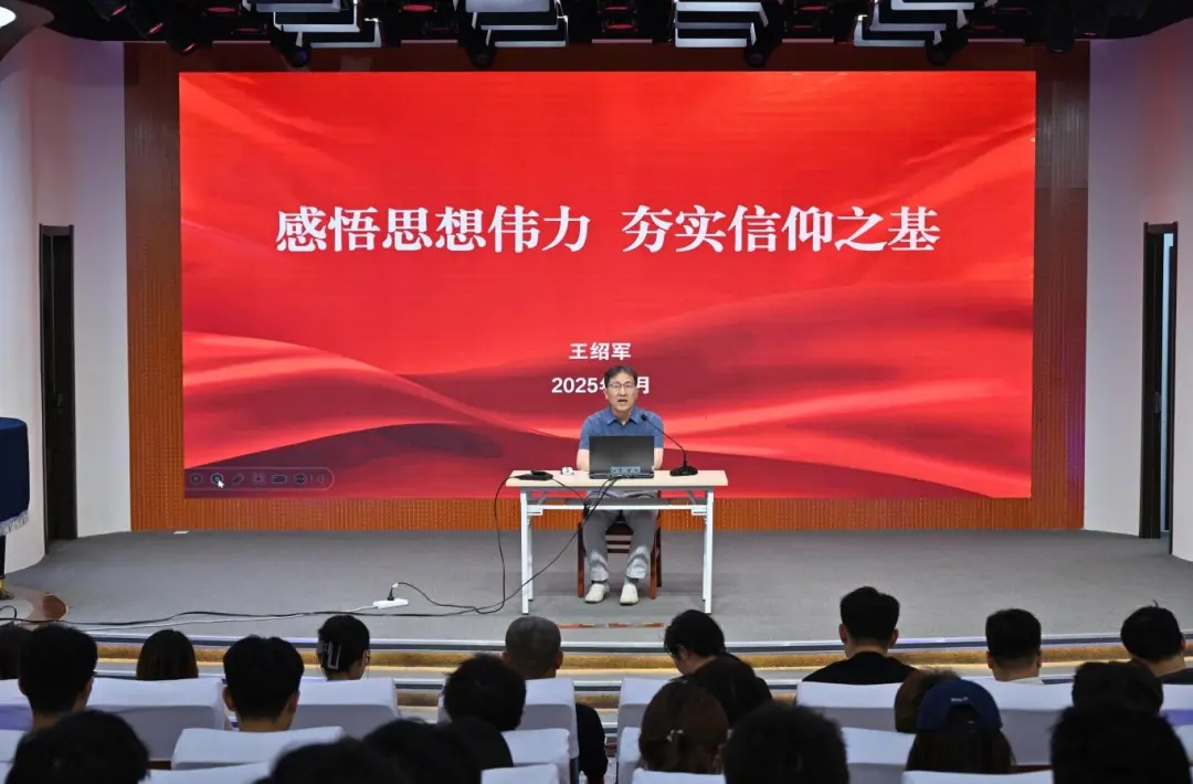 王绍军围绕《感悟思想伟力,夯实信仰之基》这一主题进行了深入阐述。他指出,习近平新时代中国特色社会主义思想为青年成长指明了方向,青年一代要处理好守正与创新的关系:既要严守纪律规矩,又要勇于突破创新,既要传承优良传统,又要主动适应时代变革。他引导在场青年深入思考在建设教育强国新征程中,如何将个人理想融入国家发展大局,真正实现个人成长与国家发展同频共振,这一话题引发了在场师生们的热烈讨论。