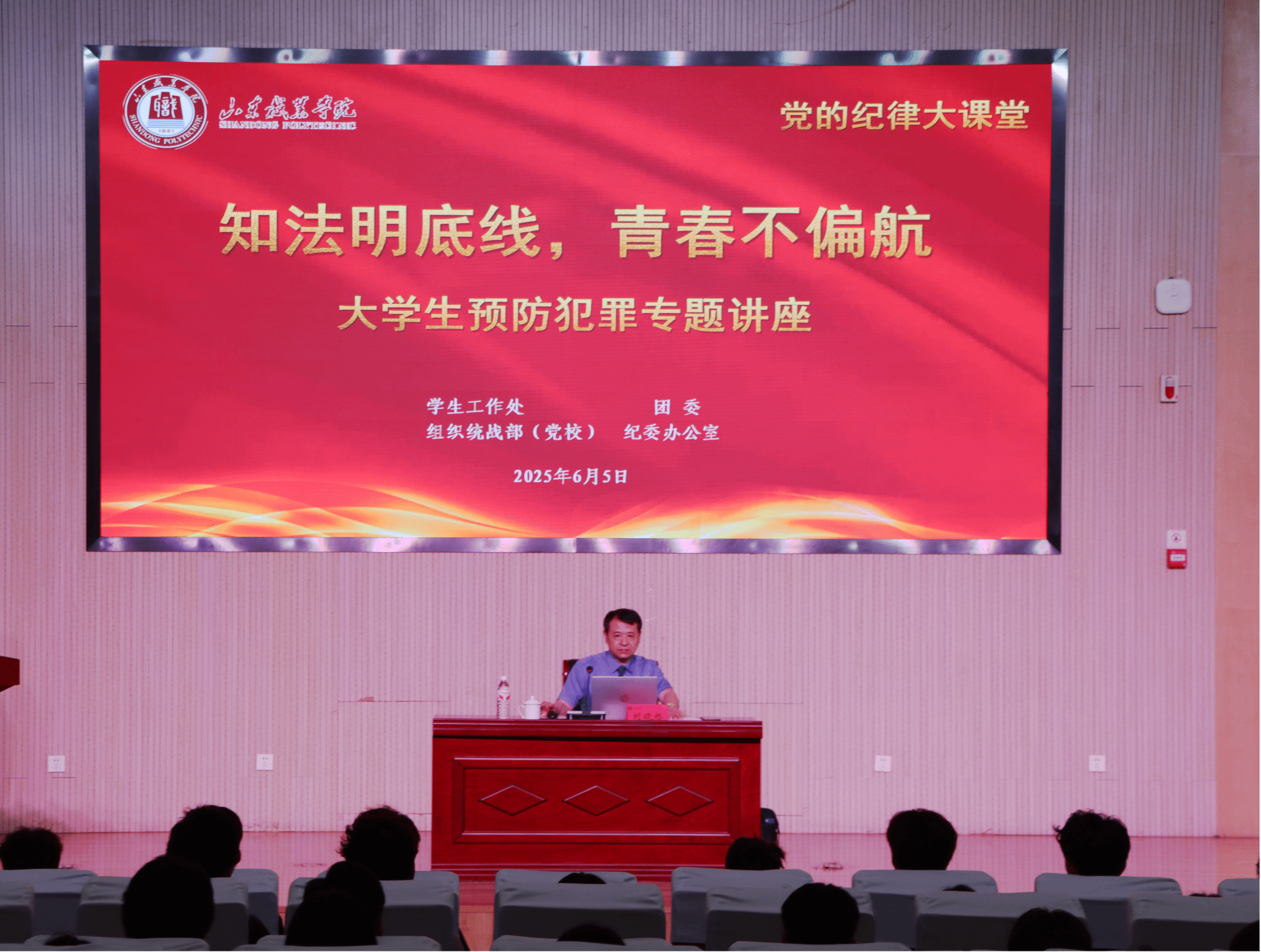 为进一步强化青年学子法治观念,筑牢校园安全防线,6月5日,学生工作处联合团委、组织统战部(党校)、纪委办公室在学校东报告厅举办“知法明底线,青春不偏航”大学生预防犯罪专题讲座。此次活动特邀济南市高新区检察院副检察长刘晓林担任主讲嘉宾,200余名师生参加讲座。