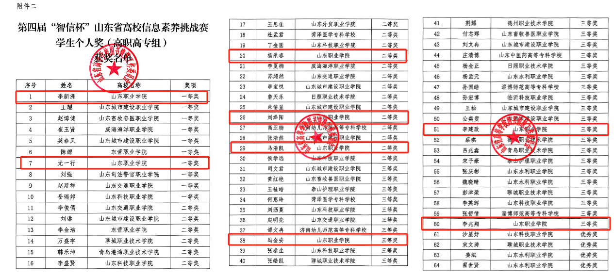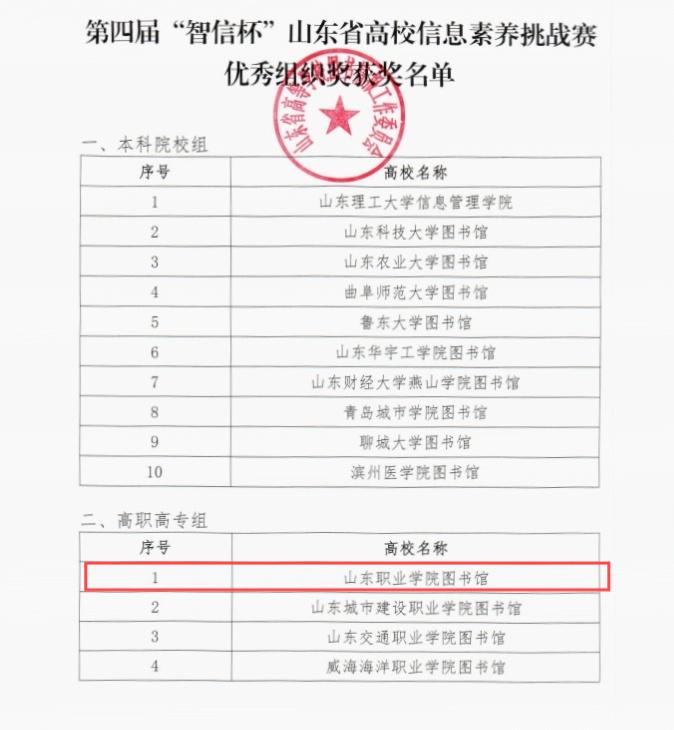近日,第四届“智信杯”山东省高校信息素养挑战赛圆满落幕,伟德再次取得优异成绩。李新洲、尤一行荣获一等奖,杨承睿、刘泽阳、马浩凯获得二等奖,冯金安、李建政、李兆翔获得三等奖,尉湉、张华鑫等7名同学获得优秀奖,其中李新洲同学以满分成绩荣获高职高专组全省第一名。伟德图书馆获优秀组织奖。