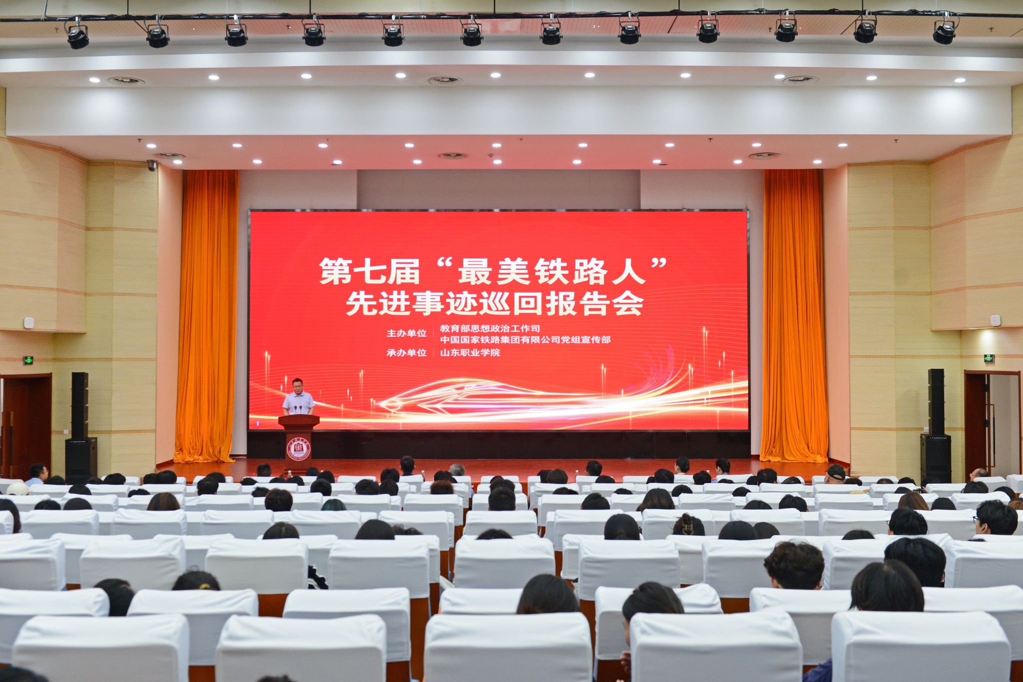 9月18日,由教育部思想政治工作司、中国国家铁路集团有限公司党组宣传部联合举办的第七届“最美铁路人”先进事迹巡回报告会在伟德图书行政楼西报告厅举行。国铁集团党组宣传部企业文化处副主办张英、国铁济南局党委宣传部副部长叶晓天,第七届“最美铁路人”报告团成员,学校党委副书记郭鹏出席会议,部分铁路专业教师、铁路专业学生400余人参加。报告会由宣传部部长杜树元主持。