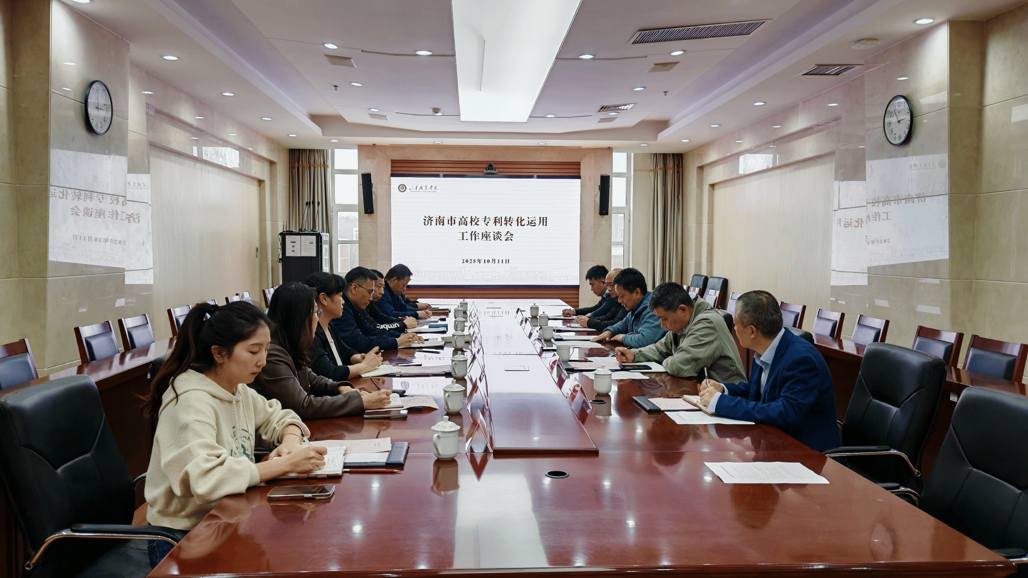 马帅对学校在科研和社会服务方面取得的成就给予了高度评价,并重点介绍了“先试用、后付费”的专利转化新模式与“济南市场监管‘NQI质立方·强企伙伴’服务体系”的先进经验。闫玉梅针对高价值专利培育中心的项目申报进行了精准的政策解读与实操指导,希望未来校地双方能进一步加强协同联动,共同为区域高质量发展注入新动能。