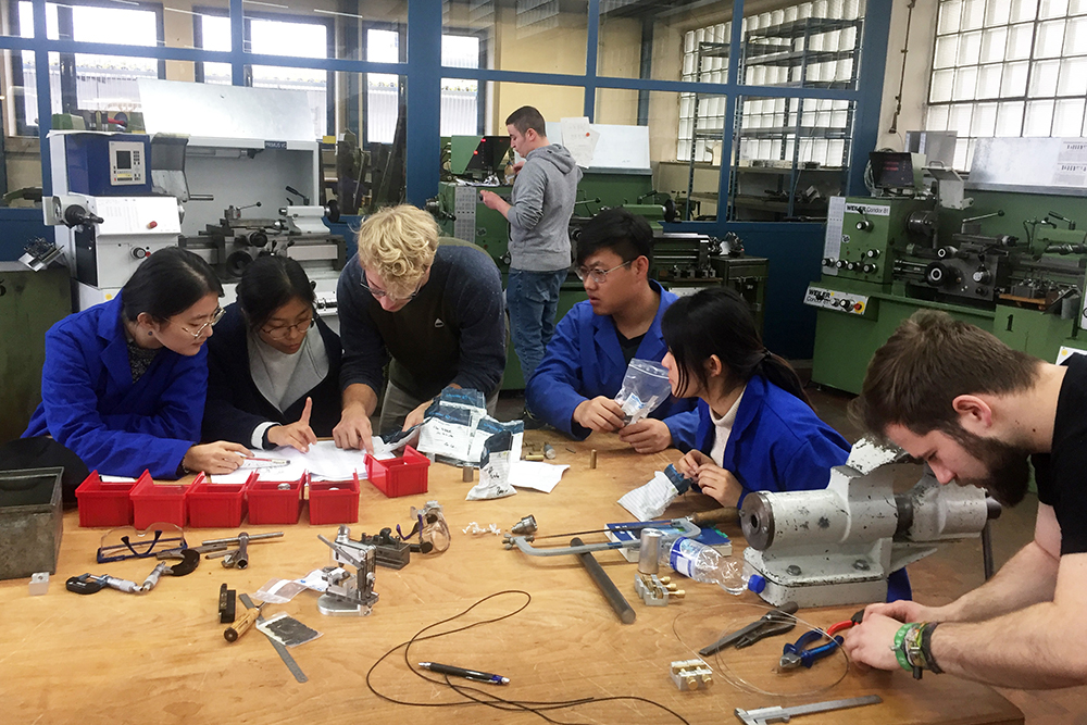 共同克服沟通关,携手完成新项目——《微型手动钻床制作》是此次师生访问交流期间的一项重要合作项目。尽管学院师生具有一定英语基础,但由于德方师生日常使用德语,且双方文化背景、思维习惯、表达方式等方面有不小差异,学习中使用的机器设备不同,所以在项目开始阶段,需要共同克服沟通障碍。