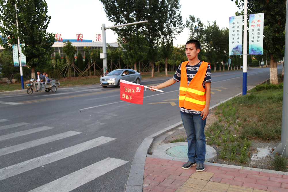 “同志,您的自行车走在了机动车道上,请往后退一点”“老人家,现在是红灯,为了您的安全,请绿灯亮的时候再行”…… 志愿者利用课余时间在十字路口旁、各道路岔口边、城区内街道等公共场所,进行志愿服务。活动中,志愿者不时挥舞着小红旗,提醒一些违章市民,同时热情地向市民宣传文明交通知识。志愿者们文明的举止、和蔼的态度、规范的劝导、温馨的提醒,成为街头一道亮丽的风景线。