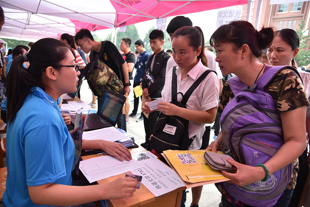 9月9日迎新工作当天,全体迎新工作人员、志愿者早早来到迎新现场,布置好迎新场地。党总支书记吕鹏、系主任吴书锋、副主任张利民、周垂玉,对迎新工作进行现场指导,与新生、家长亲切交流,勉励新同学。迎新志愿者身佩绶带、胸挂标志牌,从新生迈进校门那一刻,就为新生进行全程引导,提供热情、细致、周到的服务。查看分班名单、电子注册、发放校园一卡通、现场缴费、领取公寓备品、公寓入住等,每个环节井然有序,忙而不乱。迎新工作人员、志愿者的一张张热情的笑脸、一句句温暖的话语、一件件称心的实事,得到新生、新生家长的充分肯定,新生们也感受到新的大家庭的温暖。