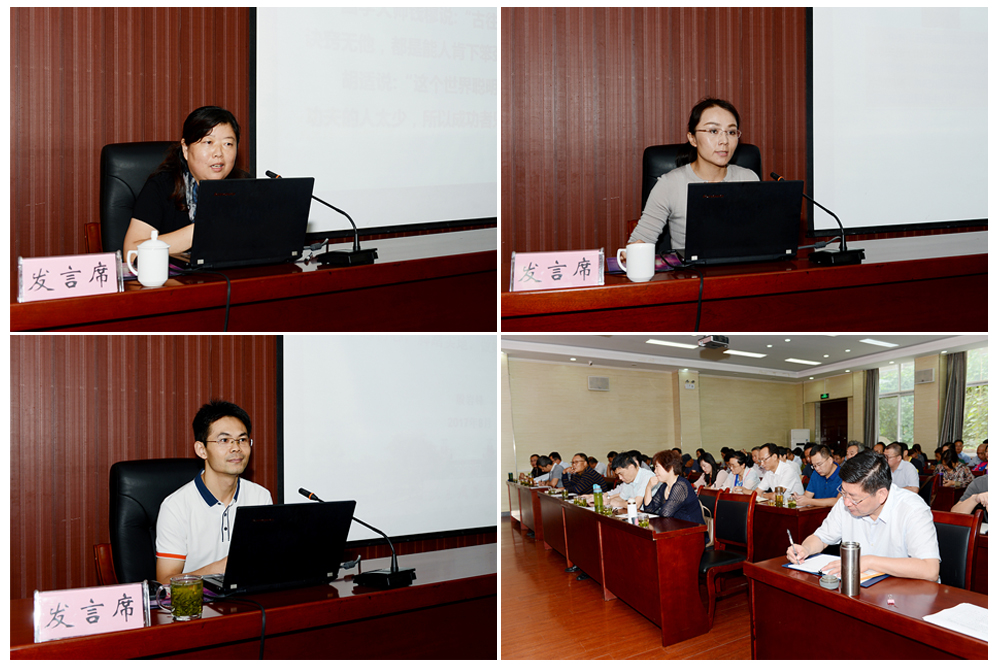 8月30日至31日,我院召开2017年暑期工作研讨会。会议邀请省委高校工委副巡视员刘欣堂作《深入学习贯彻全国全省高校思想政治工作会议精神》辅导报告,学院党委书记王荣昌在会上讲话,院长秦河总结暑期重点工作并对下半年重点工作作部署安排。学院艾菊兰、王少妮、殷岩锋等三位教师围绕育人主题分别作了主题报告。学院领导班子成员、教授、正科级及以上干部参加会议。
