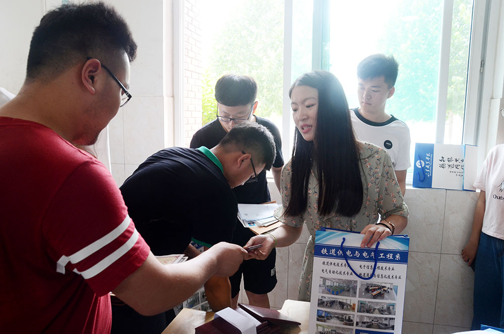 服务中心现场免费为毕业生提供矿泉水、西瓜、饮料等解暑食品。大一、大二的同学们自发成立志愿者服务队,热情主动地为毕业生提供各种贴心服务。毕业生现场领取毕业证书,铁道供电与电气工程系为毕业生提供本系自行设计、颇具特色的文件袋文件袋以方便毕业生放置毕业证、学位证、报到证等各类证件,为毕业生暖心送行。