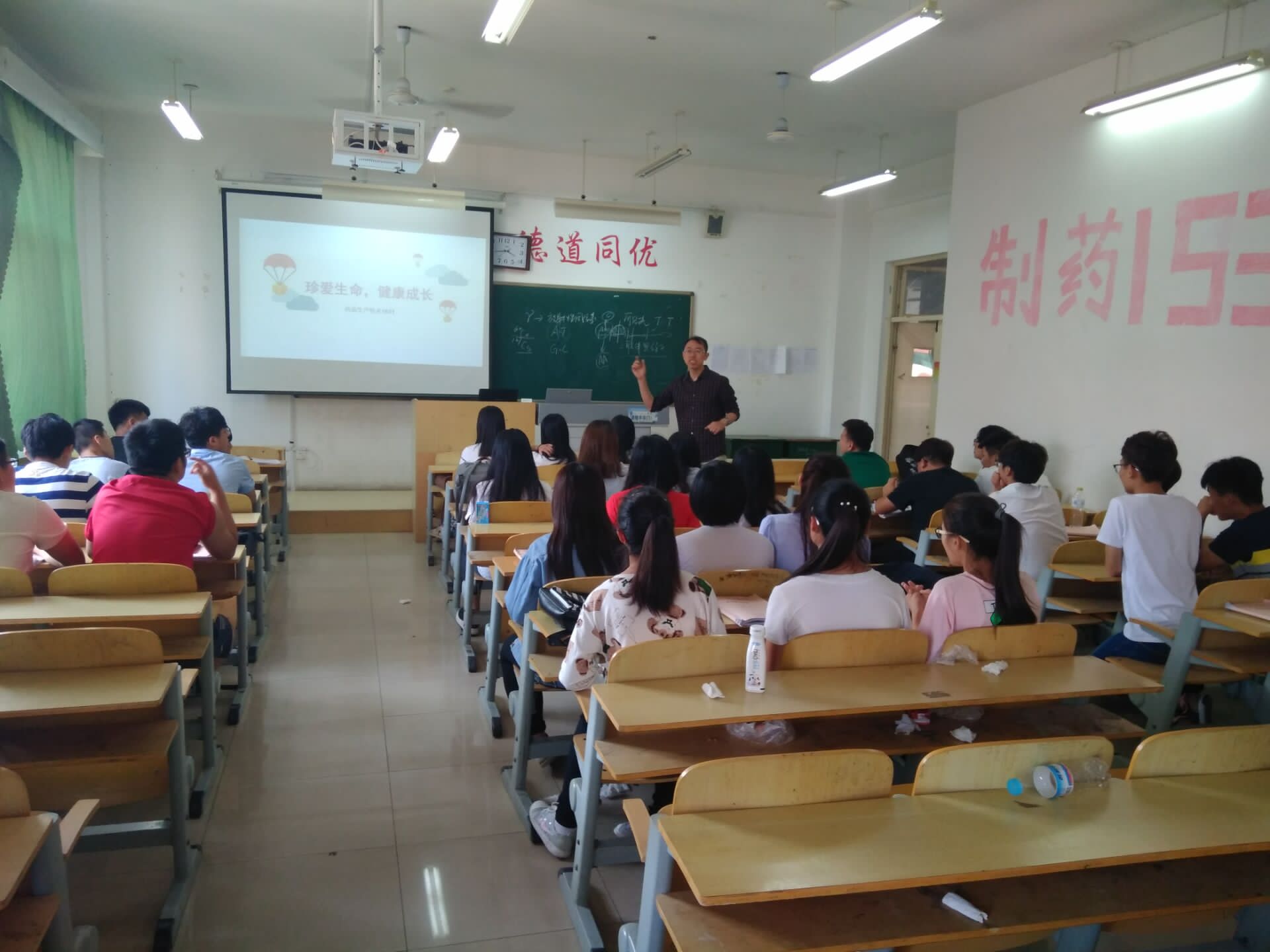在药品1632班班会中,班主任王广勇老师从感恩和面对挫折两方面入手,让同学们体会生命的意义,珍惜大学时光,在短暂的生命中无论遇到多大的挫折,都不能轻易放弃。