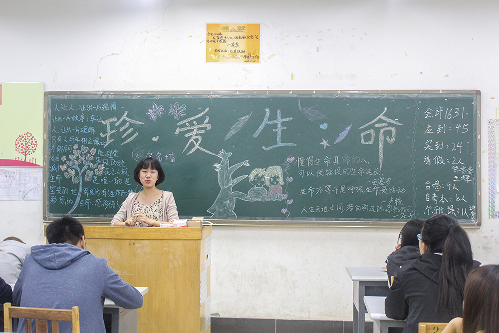 各班班会的黑板报形式多样、内容丰富,都突显了“生命只有一次,珍爱生命,才能健康成长”的主题。物流1633班通过小组探讨的形式来讨论“如何保护自己,珍爱生命”及引发不安全事故的原因有哪些;会计1631班采用演讲的方式来讴歌生命之美,引导同学们热爱生命,热爱生活;交管1631班采用现场随机问答的方式来了解学生个人对生命安全的理解。班会上同学们认真听讲,积极回答问题,纷纷表示生命是脆弱的,它给予我们每一个人只有一次,我们必须珍惜。
