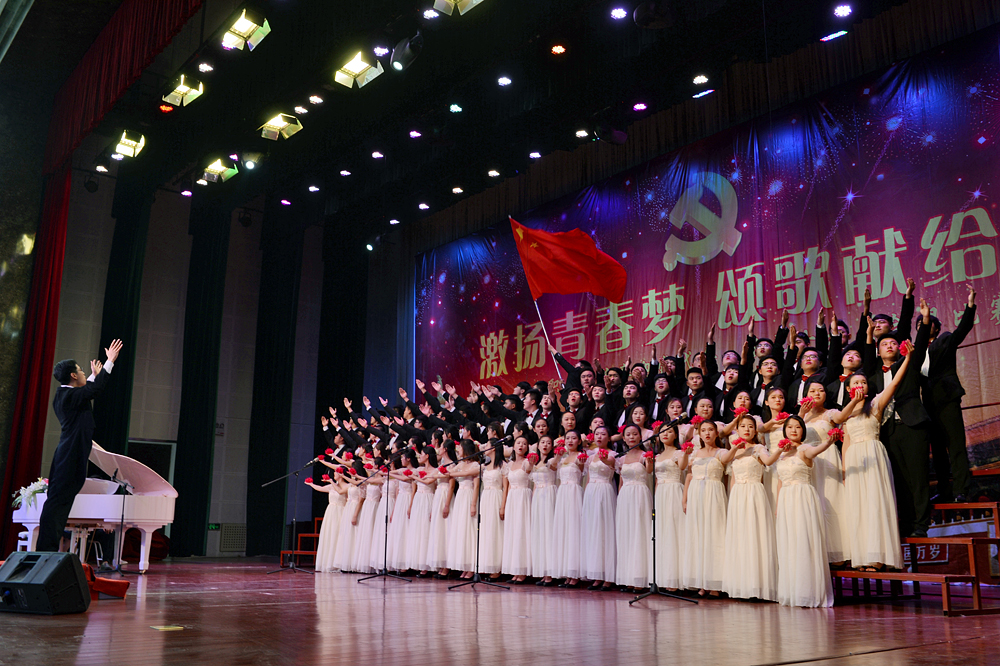激扬青春梦,颂歌献给党。6月13日下午,由学院团委主办、各系团总支、学生会承办的伟德betvlctor1949源于英国喜迎党代会、献礼十九大合唱比赛在南益馆隆重举行。学院党委书记王荣昌、副院长祝瑞花、副院长郭培谦及相关职能处室负责人、二级系(部)负责人和2000余名师生共同观看整场比赛。