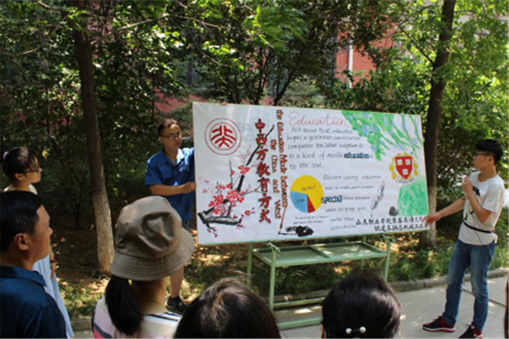 正式的比赛采用现场展示与讲解的方式进行,由各系的解说员进行解说,各位教师评委本着公平公正的原则,参观各系海报,观看相关PPT,听取解说员讲解,并根据参赛作品的内容、语言、版面以及创意进行综合评比。各系精心制作的海报配以代表的各具风采的讲解,形成了一道独特的风景。