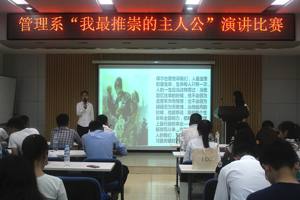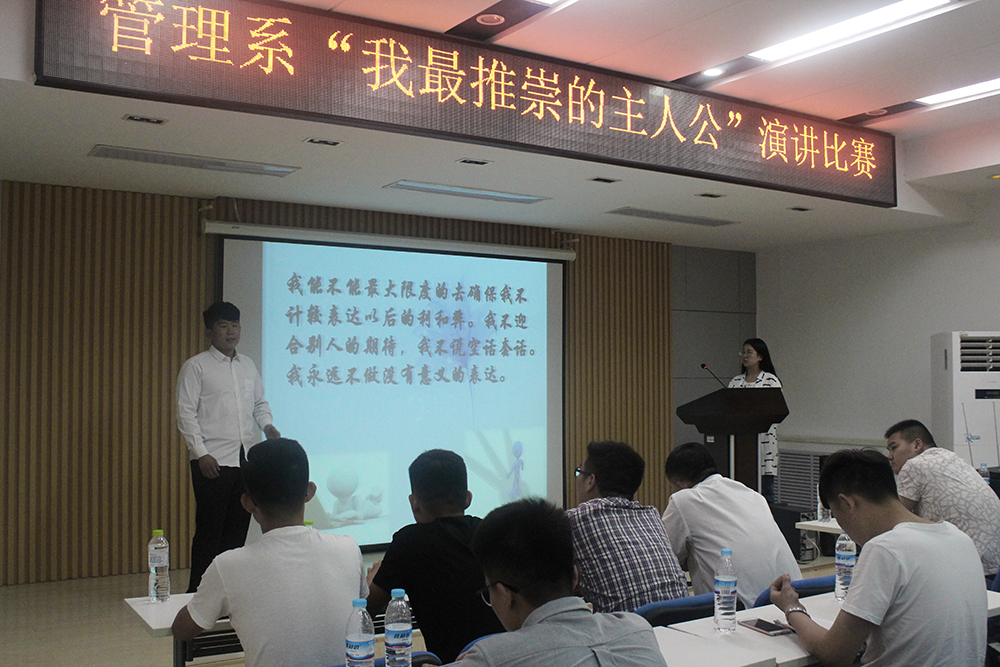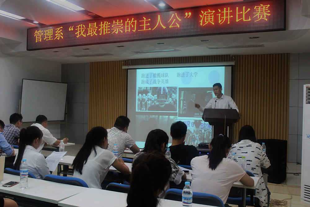 演讲期间,演讲者有的阐述了《阿甘正传》中“福尔斯”挣脱束缚、独立生活的精神,有的讲述了《“俞敏洪”传记》中表现出的“不抛弃,不放弃”的毅力。书中的主人公,无论是拥有伟大母爱的“龙应台”,勇敢接受挑战的“海伦凯勒”,还是坚持做自己的“张曼玉”,以及激励一代代青年的“保尔柯察金”等,无一不传递着人性的光辉,充满人生正能量。慷慨激昂的演讲,生动感人的事迹故事,观众备受感染,赢得阵阵掌声。最终,交管1631班王玉柱、会计1632班郑焱文同学获得比赛一等奖。