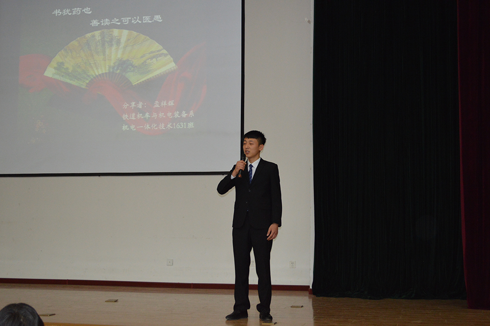 经过预赛选拔,共有11位选手进入决赛。选手们以演讲、PPT展示的方式分享自己心目中的一本好书。《中国梦-38个践行者的故事》结合大学生活阐述如何用自己的小行动为“中国梦”增砖添瓦;《我们仨》用包含深情的语言回忆了一家三口生活的温馨点滴;《平凡的生活》在娓娓道来的叙述中告诉读者要用自己的力量追求幸福……导读书目种类丰富多样,选手表现各具特色。最终,来自铁道运输与财经管理系的刘瑞彤和铁道车辆与机械工程系的李洪发同学获得本次导读比赛一等奖。