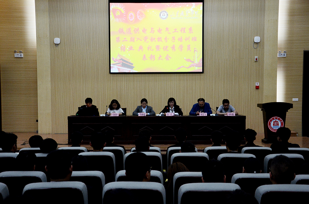 5月8日,铁道供电与电气工程系隆重举行第二期入党积极分子培训班结业典礼暨优秀学员表彰大会。系党总支书记刘红,学生党支部书记李亚飞,团总支书记范媛媛、辅导员冯国英、林毅出席结业典礼。