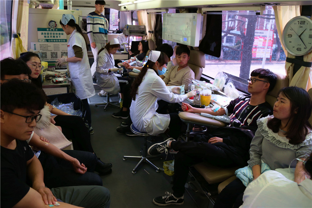 4月11日至14日,我院开展了2017年春季无偿献血活动。本次活动由山东省献血办公室、省血液中心主办,学院团委承办,活动得到了全院师生的热烈响应,大家纷纷撸起袖子献上热血,活动4天共采血423名师生,献血总量达159600毫升,师生用实际行动奉献爱心、凝聚爱心、传递爱心。