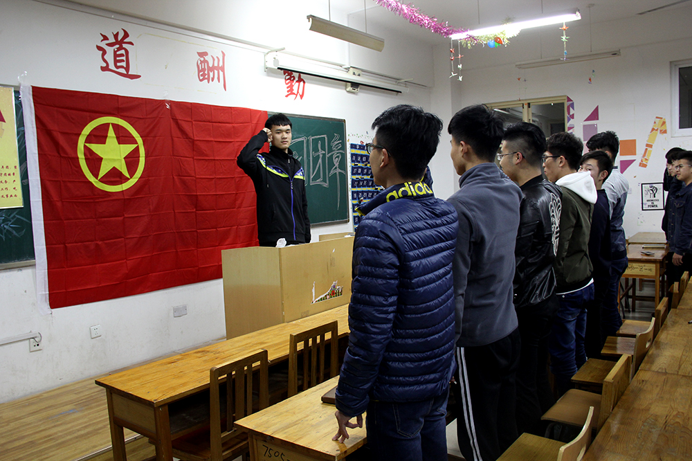 在机车1533班团支书的带领下,班会进行了会奏国歌、重温入团誓词两个环节。面对着鲜艳的中国共青团团旗,在场所以团员手握拳头,重温庄严的入团宣誓。通过宣读入团誓词,与会成员深刻领悟了团员的责任与使命,大家纷纷表示会发扬团员青年优秀品质,为社会主义添砖加瓦,为中华民族伟大复兴而努力奋斗。本次班会,激发了同学们的爱国热情,坚定了为共产主义事业奋斗终身的信念,进一步提升了大家的历史责任感和使命感。