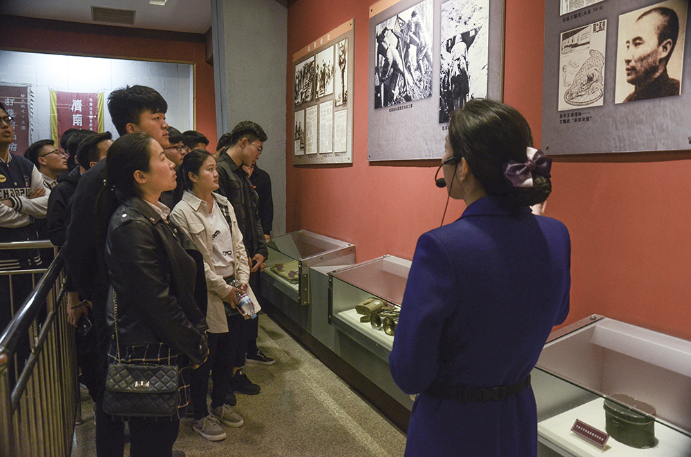 在革命烈士纪念群雕前,全体同学鞠躬、默哀,以此寄托对革命烈士们的深深敬意和无限哀思。电信1632班曲志卓向大家发出倡议,号召大家永远铭记革命先烈英雄事迹,继承英勇不屈、顽强奋斗的英雄精神,自觉肩负起历史责任与使命。随后同学们参观了济南战役纪念馆。牺牲烈士留下来的立功奖状、功劳证、军功章、染有血迹的党费等珍贵文物,见证着烈士们艰苦卓绝的战斗历程,也把同学们带回到了当年跌宕起伏、波澜壮阔的革命战争岁月。