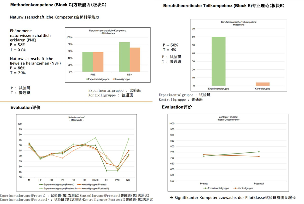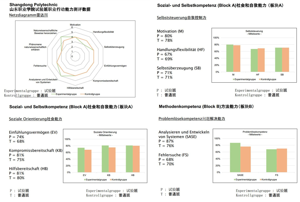 此前,博宁教授已对我院“中德合作机械制造与自动化专业胡格模式教学改革试验班”进行了为期三年的全程跟踪测评,并对试验班学生的职业行动能力测评数据进行了汇总、分析和比对。数据显示,通过三年学习,试验班学生较普通班学生在自我控制力、社会能力、问题解决能力、自然科学能力以及专业理论方面均有明显优势,尤其在专业理论掌握程度方面,试验班学生更为扎实全面。通过两次考试测试也进一步说明,胡格模式教学改革对学生职业行动能力的提升作用显著,教学改革效果突出。