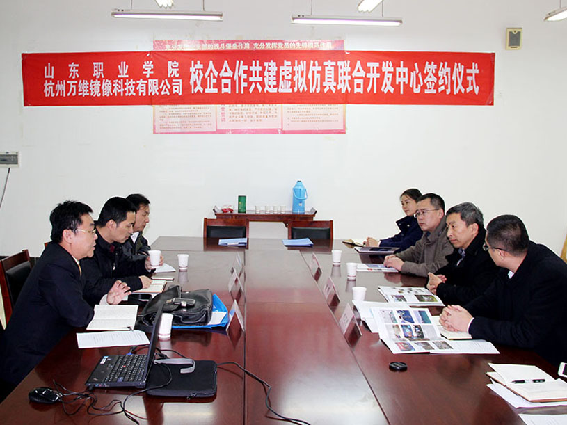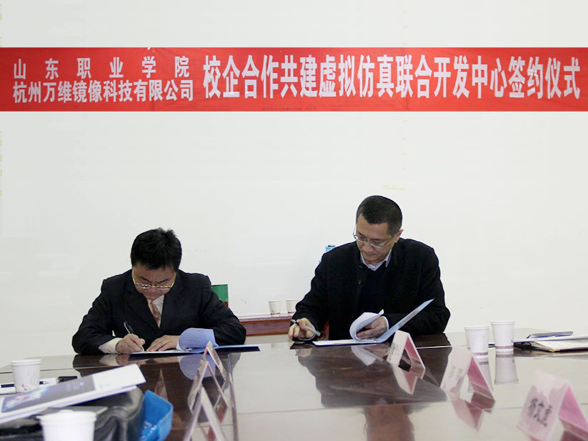 近日,我院与杭州万维镜像科技有限公司举行了校企合作共建虚拟仿真联合开发中心签约仪式,学院副院长郭鹏、万维镜像公司董事长单岩出席活动。