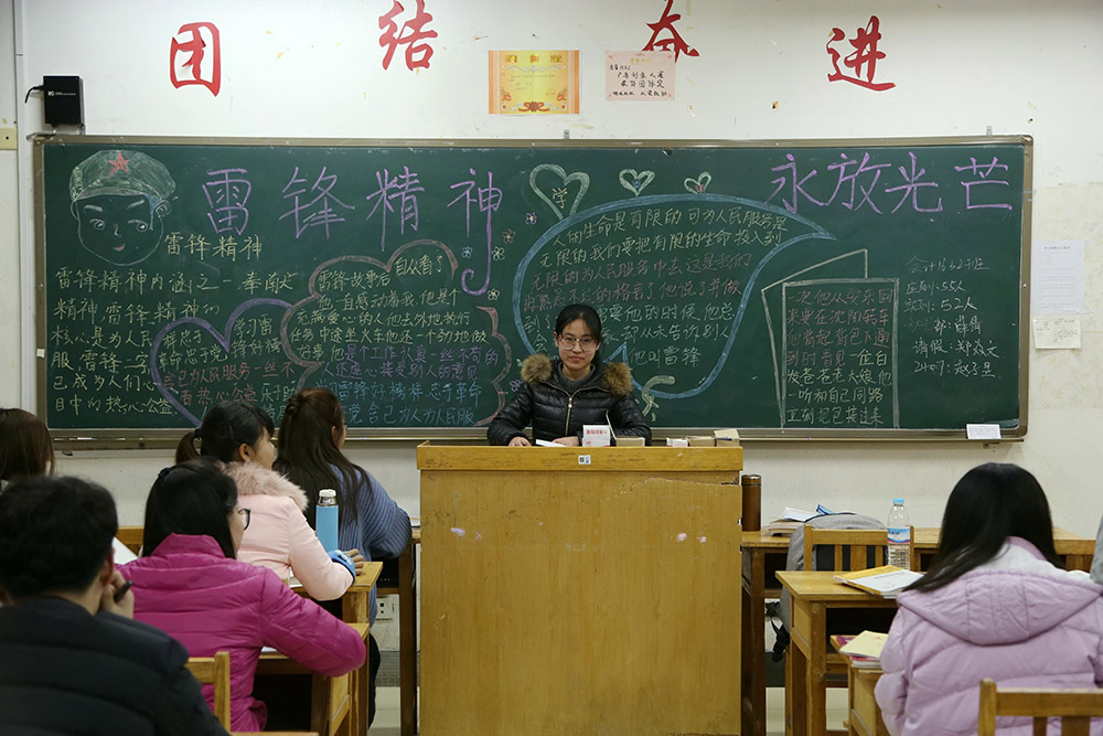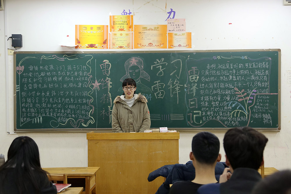 各班主题班会形式多样,有的讲述雷锋事迹、讲述身边的活雷锋故事,有的朗诵雷锋名言、谈雷锋精神,还有的吟唱有关学雷锋的歌曲、列举学雷锋的戏剧电影等。期间,同学们还踊跃发言,围绕如何理解和对待“雷锋精神”及当代大学生怎样更好的践行“雷锋精神”话题展开了热烈讨论。系学生党支部书记、学工办主任栾金志表示,同学们要以实际行动,大力弘扬雷锋精神和青年志愿者精神,自觉践行社会主义核心价值观,做品德高尚的大学生。