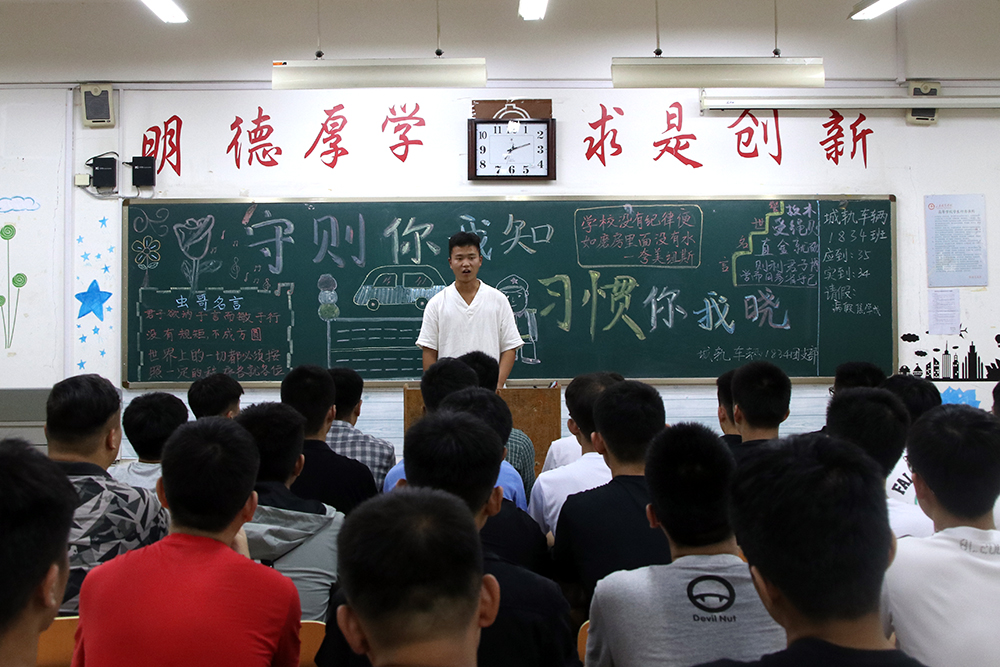 为进一步规范学生日常行为,养成良好习惯,9月16日,城市轨道交通系举办“守则你我知,习惯你我晓”主题班会,帮助学生改正不良习惯,积极构建文明校园。