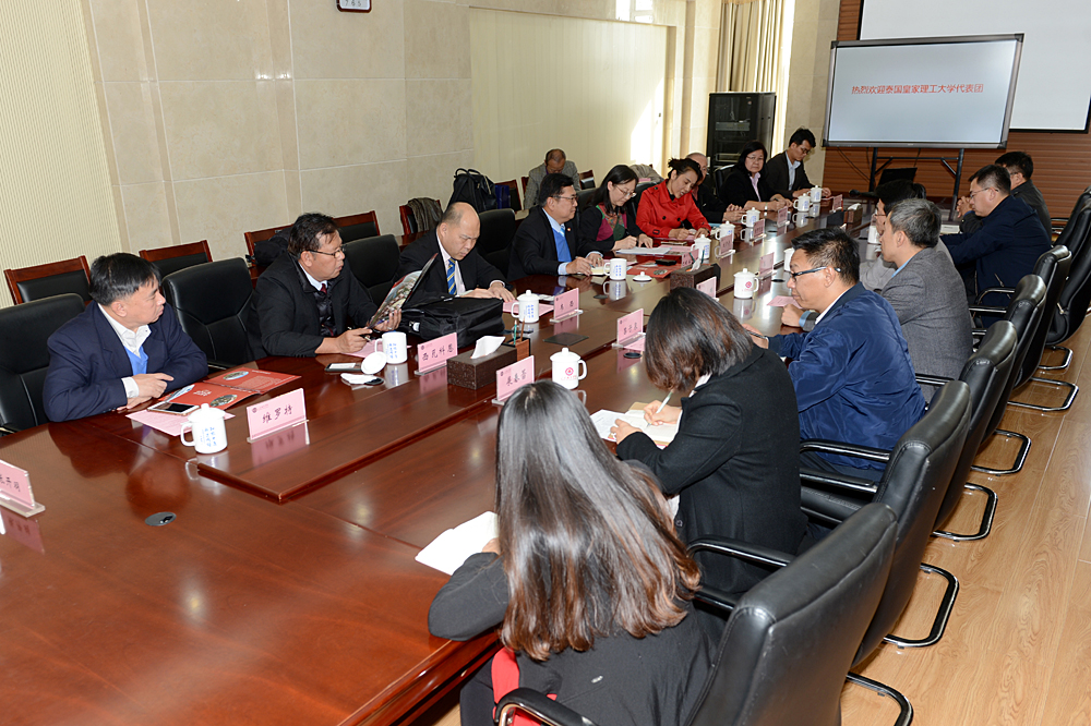 秦河对泰国皇家理工大学校长一行到访表示欢迎,并介绍了我院办学特色、办学优势及招生就业等情况。双方在师资培养、学生交换、课程建设、实践教学建设方面交换了意见,就泰方派轨道交通相关专业教师来我院进修,为我院学生提供全额奖学金,双方共建轨道交通学院等合作达成了初步意向,双方均希望能进一步加深各方面的国际交流与合作。会上,双方互赠了传统特色纪念品。