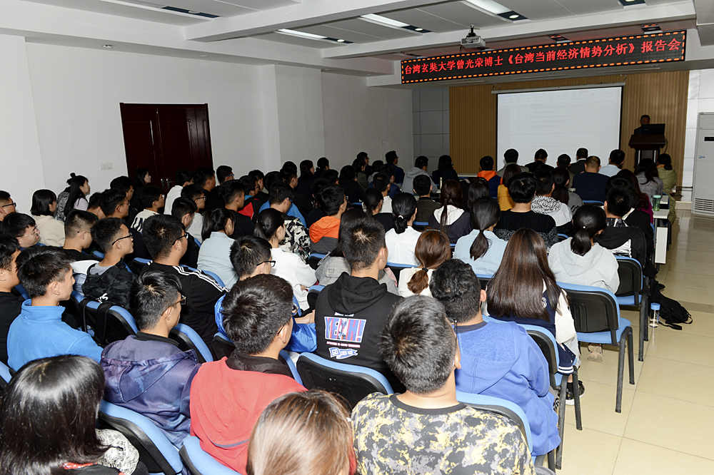 22日,曾光荣在铁道运输与财经管理系面向全体师生开设了讲座《台湾当前经济形势分析》,用详实的数据和丰富的图表,分析了台湾近期及将来的经济形势。今年五月,我院聘任曾光荣为兼职教授,开启了我院与台湾高校合作的新局面。