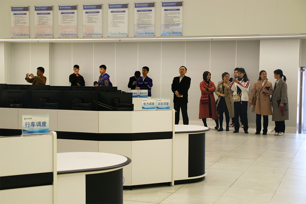 在范村车辆基地,考察团参观了运营控制中心、基地培训中心的模拟驾驶实训中心、地铁1号线模拟沙盘系统、DCC车辆调度中心、乘务派班室、车辆检修库等场所,深入了解了地铁1号线的实际运营情况。师生们还饶有兴趣地登上正在检修的电客车司机室,近距离了考察了有关结构,采集了有关数据,为后续开发专业课程、制作VR视频收集了宝贵资料。