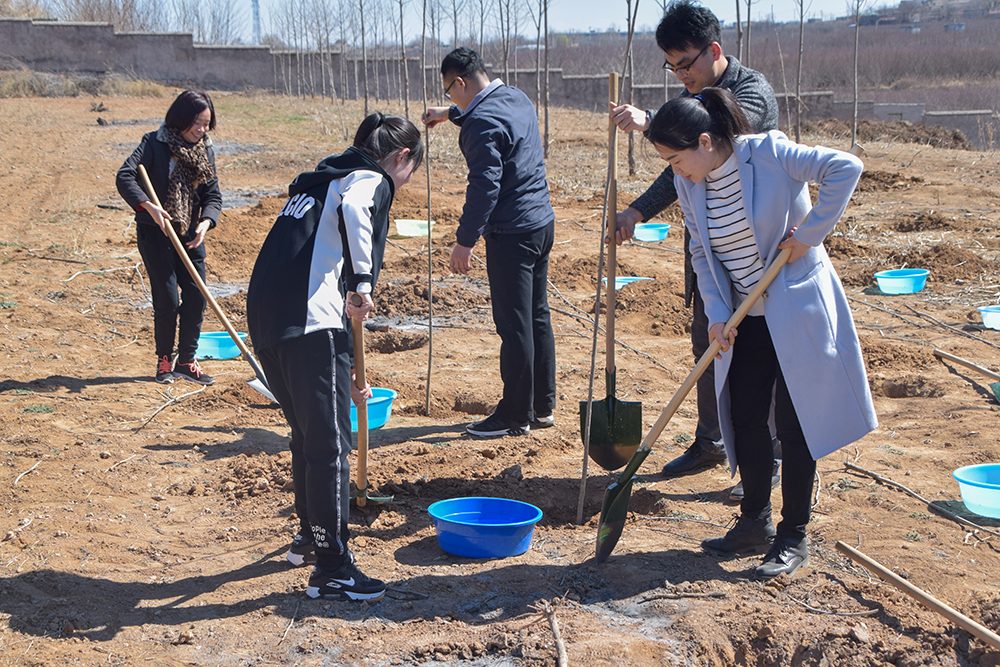 植树现场,师生们干劲十足,分工协作。挥锹铲土、扶苗填坑、踩实浇水,每一道环节都做得一丝不苟,各个环节衔接有序、配合默契。大家挥洒着汗水,享受着劳动带来的快乐,师生们还不时交流着对植树造林、保护生态、绿色发展的看法。
