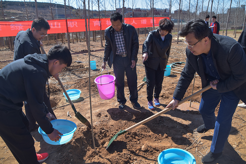 “走,一起植树去!”3月12日,在全国第41个植树节来临之际,铁道供电与电气工程系开展“植树添绿染山职,育树育人谱新篇”主题活动。学院副院长祝瑞花,系主任兼党总支书记林毓梁,副主任张伟、赵永君,团总支书记范媛媛,辅导员李井铭、薛高芳,专业课教师刘霞、匡桂阳、程长江等与百余名学生干部、志愿者齐聚学院后山,开展义务植树活动,践行低碳环保生态文明理念,弘扬劳动精神,用实际行动为美丽校园增添新绿。