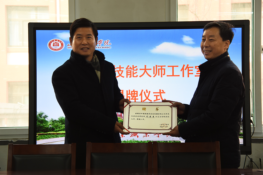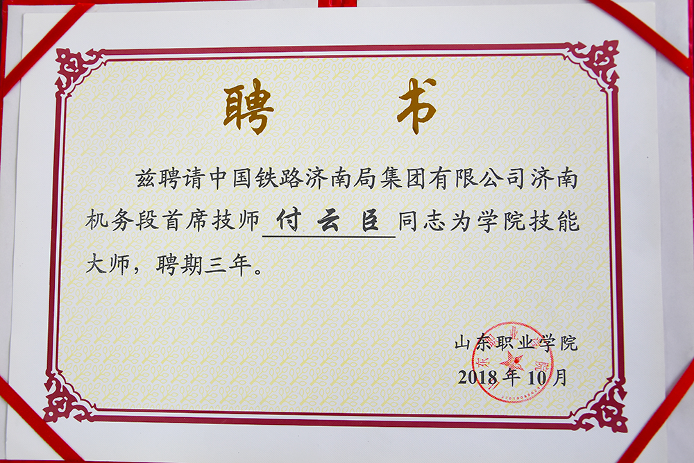 为进一步深化校企合作,提高铁道机车专业人才培养质量,12月27日,铁道机车与机电装备系举行了付云臣技能大师工作室揭牌仪式。中国铁路济南局集团有限公司首席技师付云臣,系主任徐晓东、党总支书记王培林、副主任唐勇、铁道机车专业教研室主任王志亮以及教研室全体专业教师参加揭牌活动。