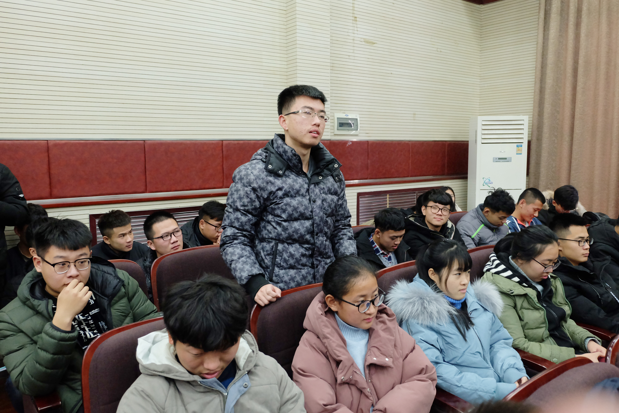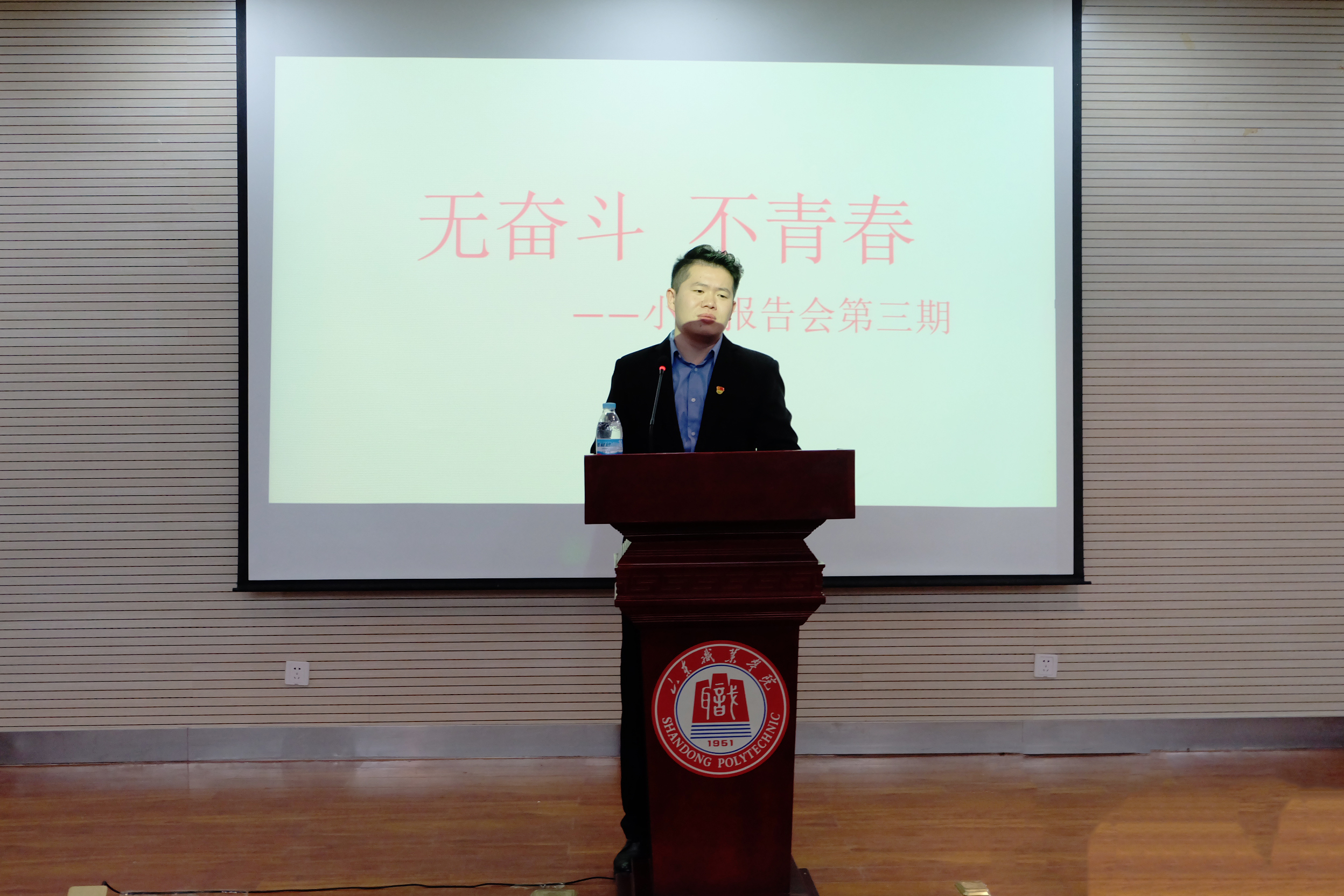 曲志卓入学前曾服役于武警安徽省总队,2016年参与抗洪救灾获得火线入党资格,曾获省政府奖学金以及优秀学生、优秀学生干部等多项荣誉。本次报告会,曲志卓给大家带来了三碗“汤”。第一碗为“坚守过程”的参汤,讲述了他从军时的奋斗历程,过程中有失败也有收获,但在过程中体会到这些苦和累,才能让自己变得更好。第二碗汤为“做好当下”的鸡汤,他强调说:“打铁还需自身硬”,活在当下,慢慢提升自己,胜过任何言论。第三碗为“完善自我”的十全大补汤,他讲述了他在学习过程中遇到的困难以及他为此付出的艰辛和努力,他引用“三人行,必有我师焉”告诫大家要不断学习。团总支书记张锦老师在总结讲话中希望大家做任何事都要学会思考,而且要善于思考,不断奋斗,在青春的道路上不断前行。
