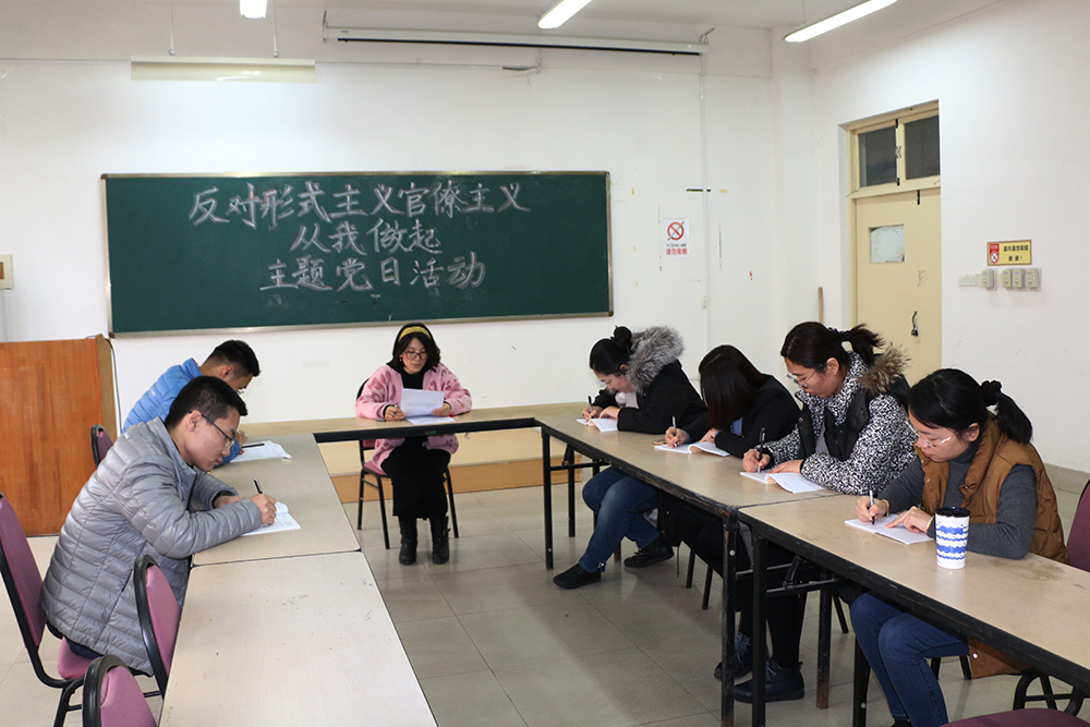 郭忠相带领教工党支部党员学习了习近平总书记解读《形式主义、官僚主义新表现值得警惕》一文中所作的指示。郭忠相强调,作为党员,我们都肩负着发挥党员先锋模范作用的重任,在日常生活中,一定要摒弃不良作风;在工作当中,务必要反对形式主义、官僚主义,扎实做好本职工作,身体力行,做好表率,在作风问题上严格到底。