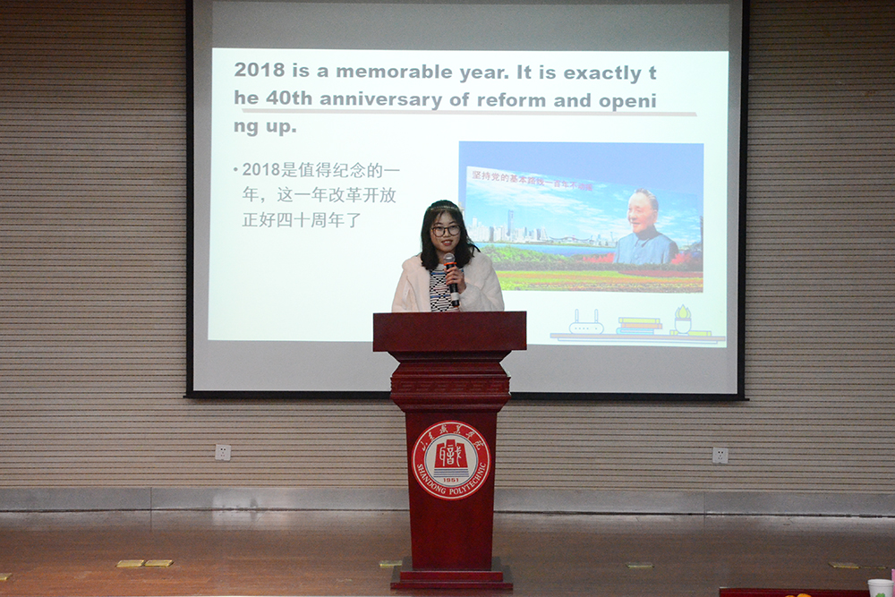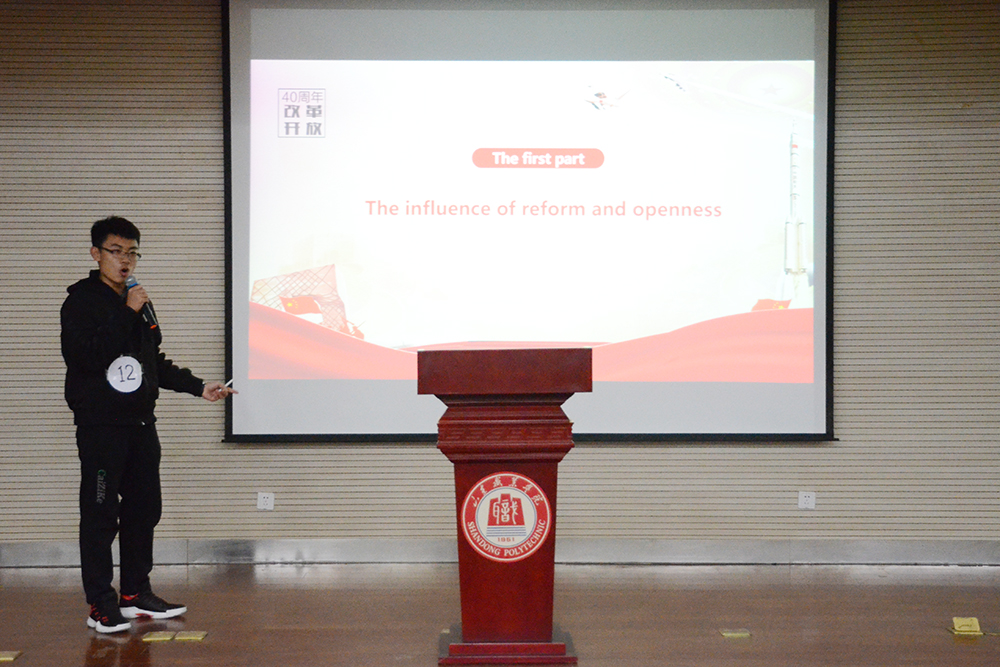 为丰富校园文化生活,激发学生学习英语的热情,12月4日,铁道工程与土木工程系举办“庆祝改革开放40周年”英语演讲比赛。比赛中,选手们以其清晰的发音、优美的语言,娴熟的口语能力和自信的微笑,展现出他们对于英语学习的热爱和执着。在才艺展示环节,选手们更是发挥出了自己最好的一面,一首首动听的歌曲或深情低沉,或情感真挚,将青春风采展现得淋漓尽致。选手们用精彩演讲博得了台下评委和同学们的阵阵掌声。经过激烈角逐,最终铁工1832班于昊同学获得本次比赛第一名。