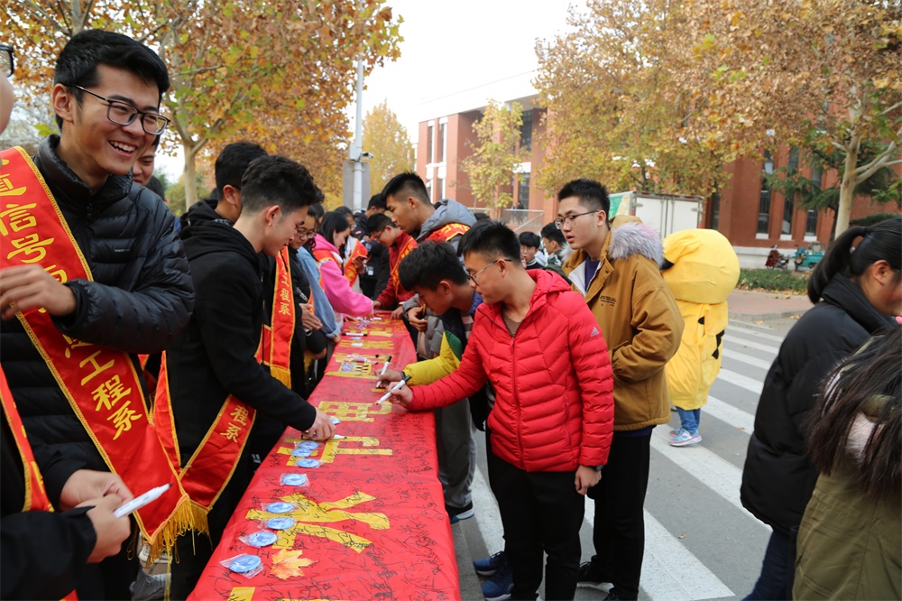 为进一步增加全校同学的节水意识,11月29日,铁道信号与信息工程系举办了节约用水签名活动。 同学们在青年志愿者的引导下,纷纷在横幅上签下自己的姓名。