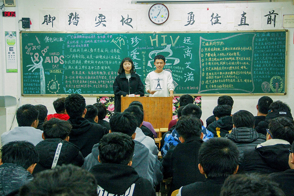 班会针对“对艾滋病病人的看法”“面对艾滋病的心态”等问题展开讨论,用事例、图片、视频等方式,就艾滋病及其预防知识进行深入了解,引导同学们积极了解“防艾”“抗艾”知识,先懂得“怎样自爱”,再做到“真正自爱”。同学们纷纷表示,近期网络上传播的一些恶意谣言让大家对艾滋病产生了很多误解,此次班会引导大家树立正确的性道德观,为“抗艾”贡献自己的一份力量。