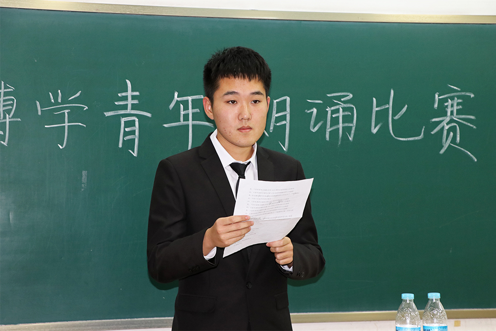 经过初赛、复赛的层层选拔,最终决出21名选手会师决赛。首先登台的一号选手任晓飞朗诵《再别康桥》,他轻盈柔和的语调感染了在场的观众,优美的节奏像涟漪般荡漾开来,仿佛置身于黄昏下的康桥,让人回味无穷。三号选手李满芳抑扬顿挫、一气呵成,将脍炙人口的《木兰诗》演绎的淋漓尽致,赢得台下掌声不断。“先天下之忧而忧,后天下之乐而乐”,七号选手杜学隆一首《岳阳楼记》,语调振起、情辞激昂,仿佛道出了山水楼观背后,文正公那坚守理想、心怀天下的一生节概。十号选手程颖,为大家朗诵铭文《陋室铭》,单纯、简练、清新的声音,勾勒出闲雅别致的陋室,朗诵已罢,余韵悠长。十三号选手刘家乐朗诵的《我用残损的手掌》铿将有力,残缺、悲剧、崇高的异样美感吸引了在场所有观众。最终,经过评委们的综合评判,任晓飞、李满芳、耿心愉、刘家乐四位选手脱颖而出,赢得本次朗诵比赛。