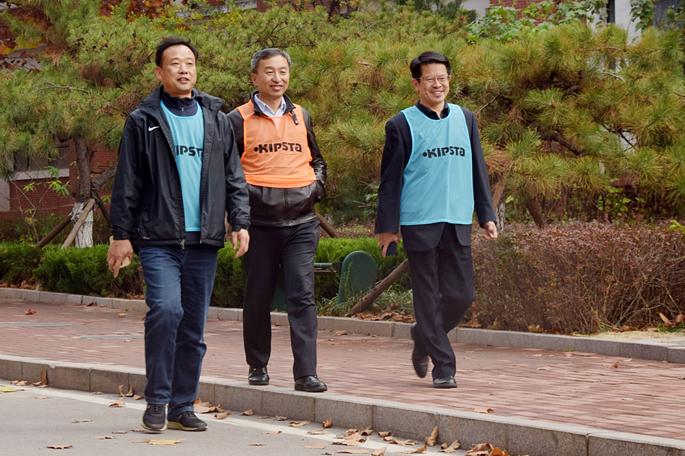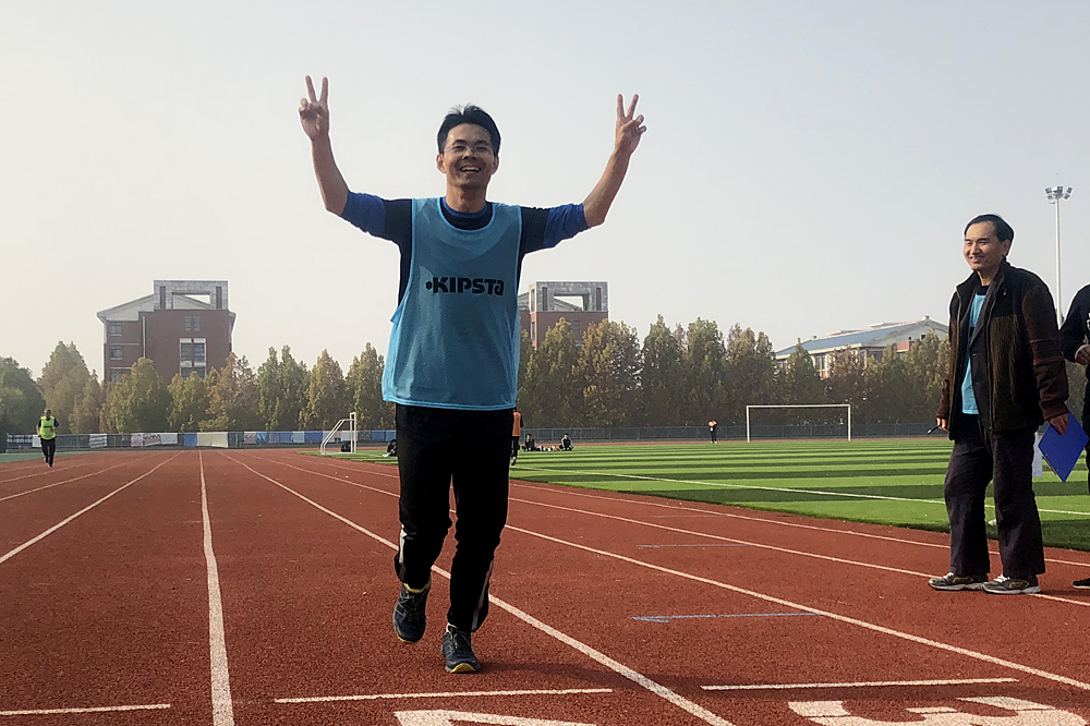 惠风和畅,碧空如洗。11月13日,全院300多名教职员工身穿亮丽的跑步马甲,精神抖擞地齐聚校园操场,期待一场健康与活力的运动盛宴。随着清脆的发令枪响,参赛队伍浩浩荡荡从赛道起点出发,场面蔚为壮观。接下来,选手们将环绕校园两圈,整个赛程接近4公里,这是对毅力与体力的极大考验。