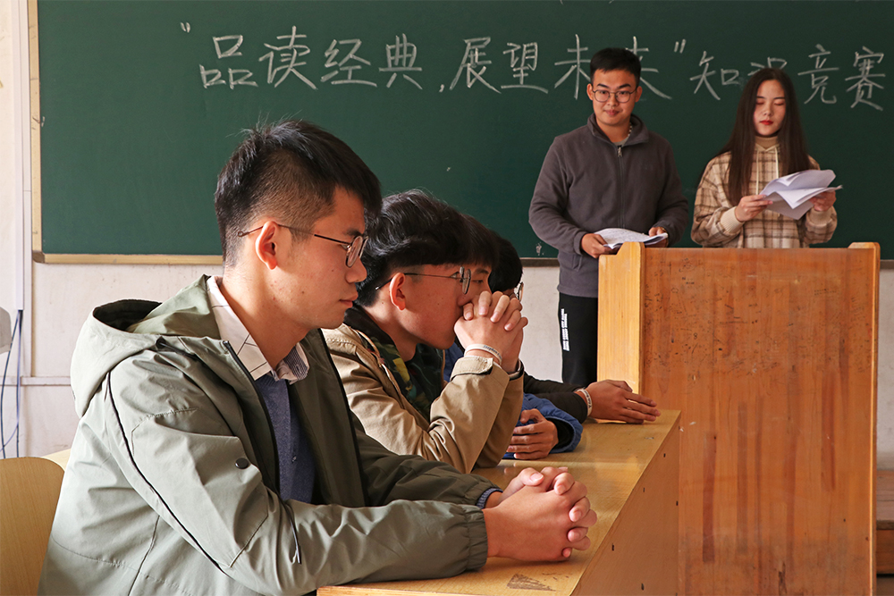 决赛共分为三轮,第一轮博览群书,由主持人向参赛队伍提问;第二轮生死时速,由抢答争先方回答问题;第三轮指点江山,以辩论方式双方队伍进行角逐。在第一轮环节中,双方旗鼓相当,诗词接龙、历史人物、古书考证等问题被双方队伍一一克服,在经历了激烈的对决之后,由城市轨道交通运营管理1831班答出诗词接龙“七月七日长生殿,夜半无人私语时”险胜。第二轮抢答环节,不仅仅是对知识储备的检验,更是对反应速度的检验。城市轨道交通运营管理1831班的同学们思维敏捷、反应迅速,在抢答环节中更胜一筹。第三轮辩论赛中,同学们就“经典文学和网络文学哪个更适合当代发展潮流”问题展开辩论,城市轨道交通运营管理1831班用经典文学是中国优秀传统文化的浓缩为论点,最终凭借出色的辩论获胜,夺得桂冠。