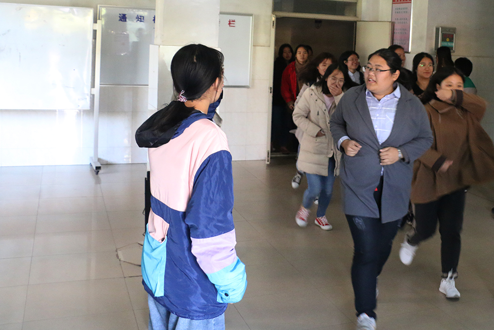 本次消防演练主要内容是模拟学生宿舍起火情景,发生火灾时学生如何自救逃生和逃生路线的选择。演练现场,同学们用湿毛巾或手捂住嘴巴,弯腰,迅速有序地从宿舍跑出,并按照指定的紧急疏散路线,迅速有序地撤离到指定位置。期间,学生干部们迅速到岗,引导同学们进行撤离并在演练结束后清点人数。