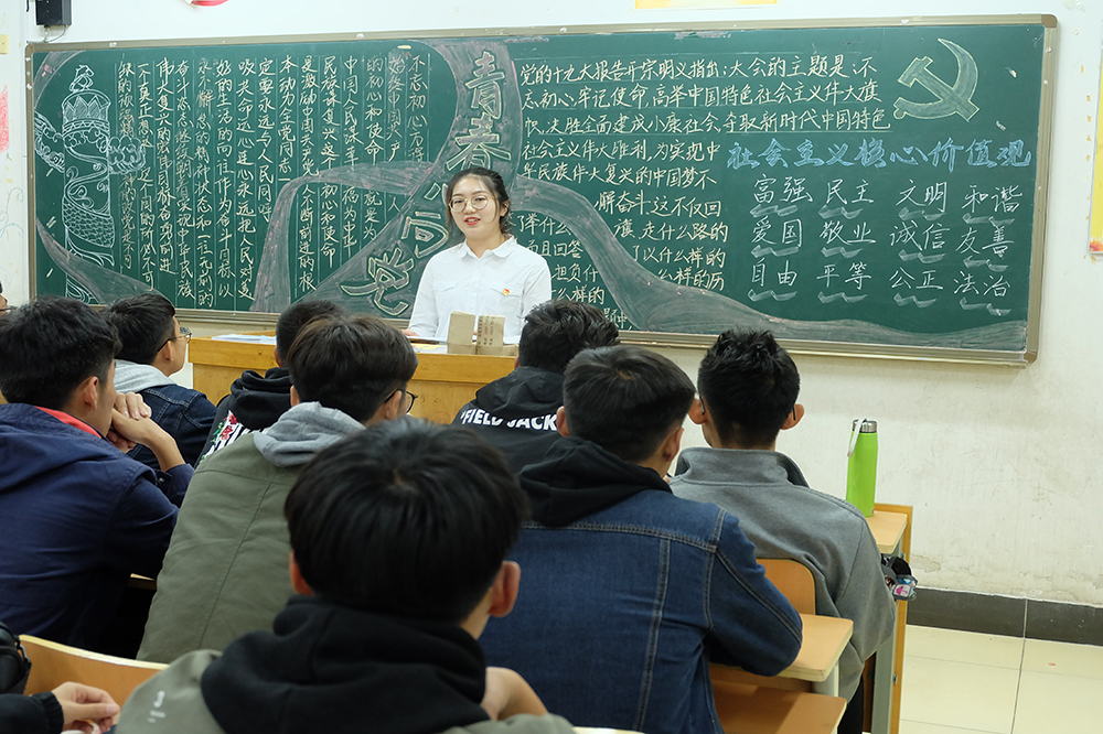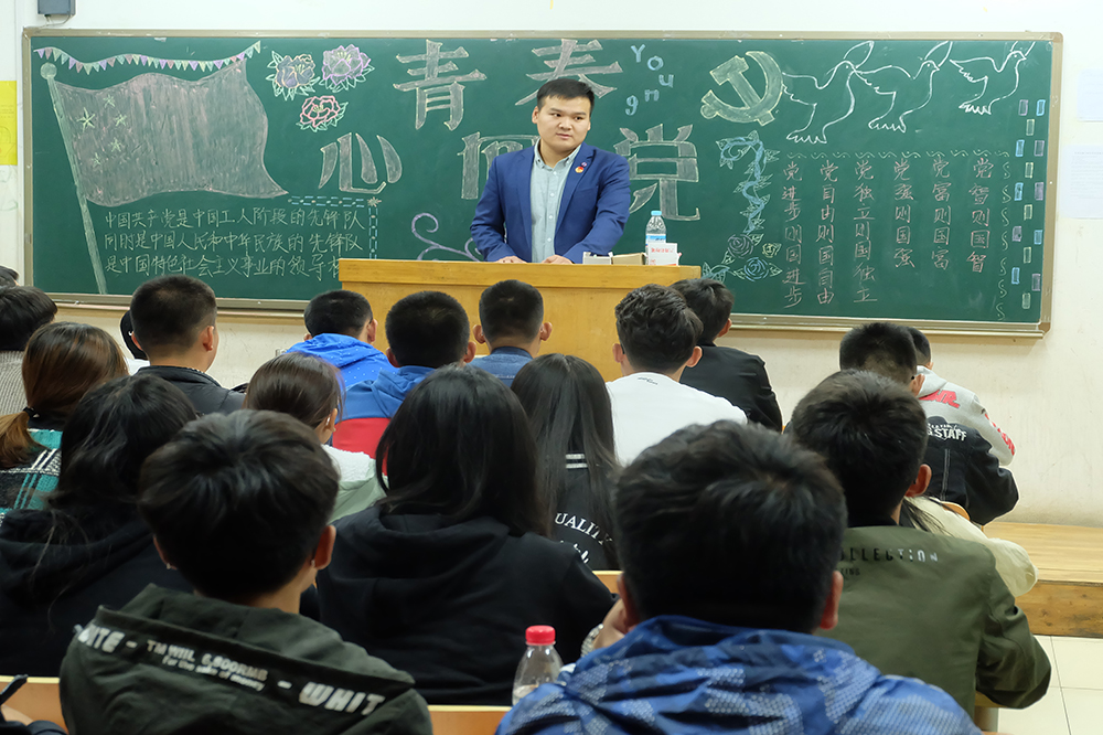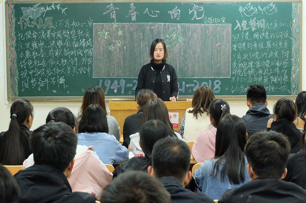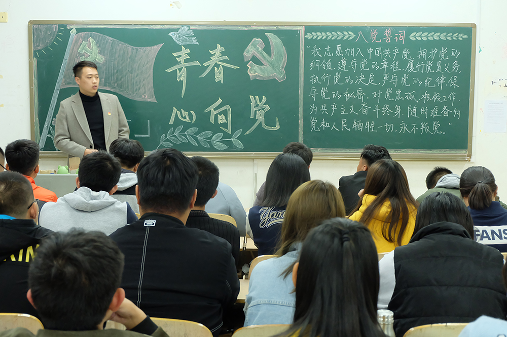 学生党支部的党员、入党积极分子深入各班级,介绍党史知识、畅谈个人的经历体会,勉励大家树立远大理想和坚定政治信仰。新生们认真听讲,仔细记录,踊跃发言。学生党员韩笑简述了中国共产党九十多年的奋斗历程,他表示虽然有过坎坷、有过曲折,但我们党都经受住了严峻的考验,实践证明,中国共产党是一个伟大的、光荣的、正确的党。入党积极分子鞠迎强谈到实现中华民族伟大复兴中国梦,他认为看似高远,实在当下,它融入到我们每一天的工作、学习、生活之中。作为新时代青年就要紧跟党中央,在奋斗中实现青春梦想。入党积极分子李秉昌表示,作为学生干部要严格工作标准,不断地提高政治素质,积极践行社会主义核心价值观。