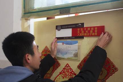 为进一步提升大学生文明意识,发挥好榜样的示范引领作用,12月2日,铁道运输与财经管理系对评选出的优秀宿舍进行门牌贴示。
