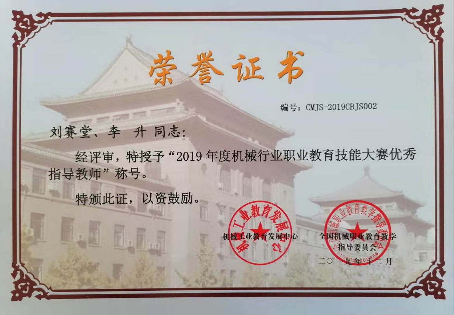 12月5日至8日,2019年度机械行业职业教育技能大赛(高职组)“辰榜杯”数控多轴联动加工技术赛项举行。我院机械制造与自动化专业2018级学生孙元超、张庆振组成的参赛队,在刘赛堂、李升两位老师的指导下,与来自全国26支代表队的52名选手同场竞技,最终斩获一等奖佳绩。