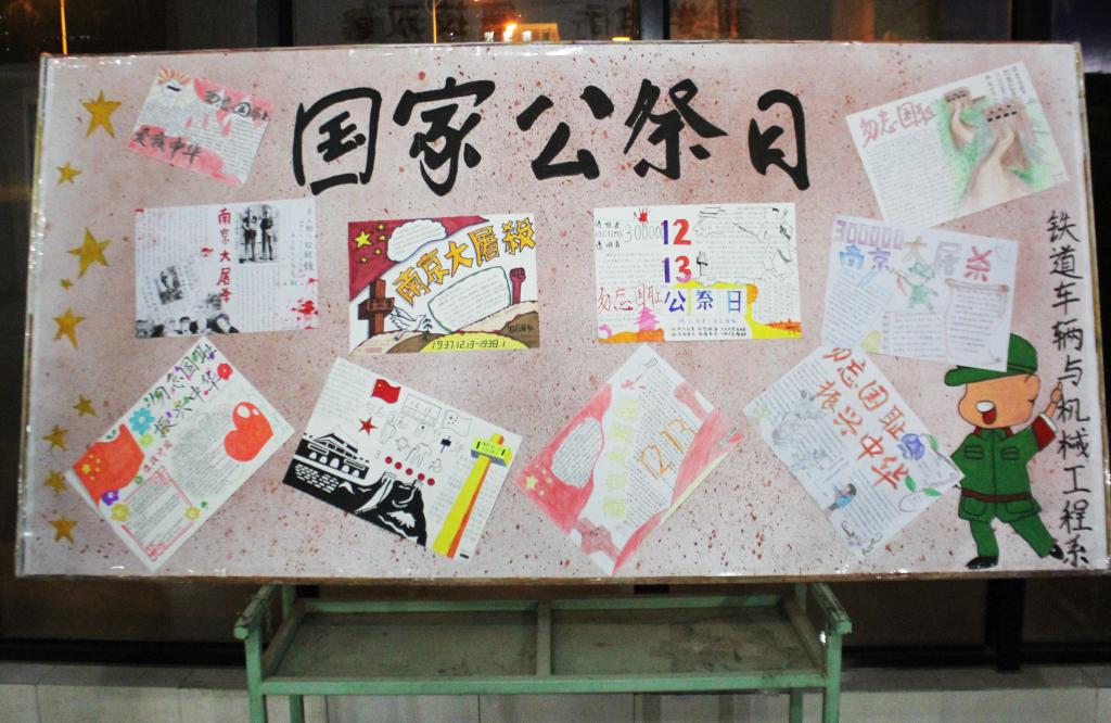 为了激发学生的爱国情感,牢记历史,勿忘国耻,在南京大屠杀死难者国家公祭日到来之际,铁道车辆与机械工程系开展了“勿忘国耻,圆梦中华”爱国教育活动。