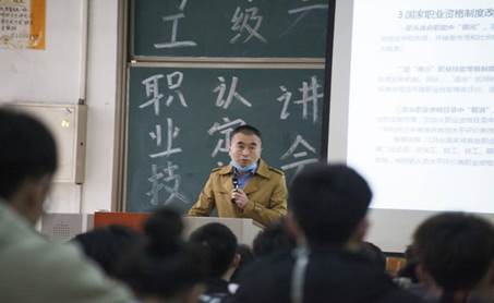 乐耘针对当前的就业形势和就业政策,对铁道信号专业学生的就业情况作了简单的介绍和分析,对信号施工安全知识进行了讲解,重点介绍了信号工技能等级的新规则。他强调在当前铁道建设蓬勃发展的形势下,信号工愈来愈受重视,大家应在学校里学好专业知识,练好专业技能,为未来工作打下良好基础。