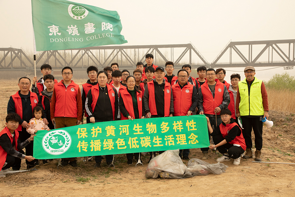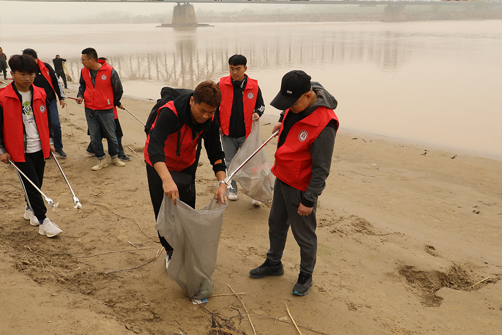 在基地志愿者的带领下,全体师生开展了黄河净滩行动,对黄河周边的垃圾进行了清理。