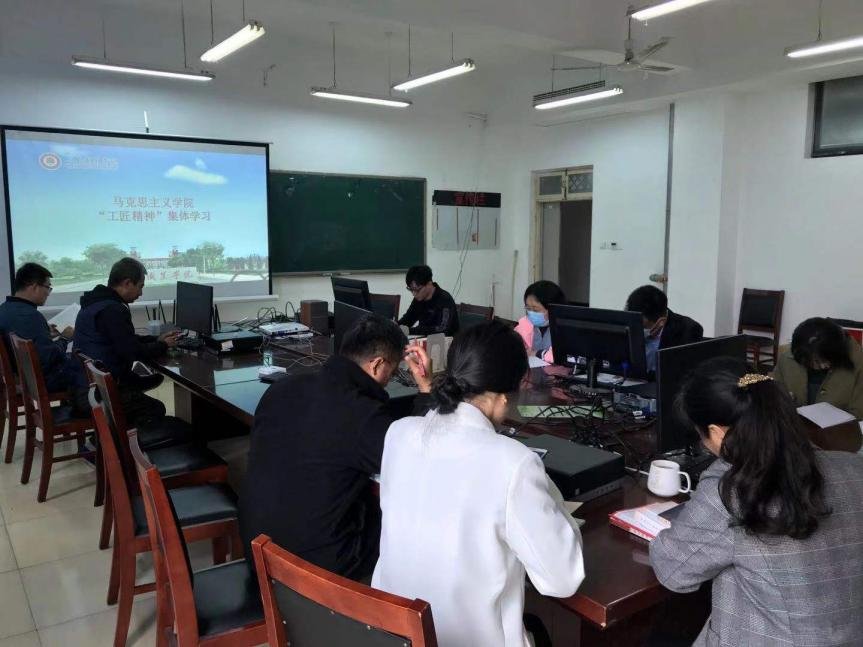 为进一步推进工匠精神培育与思政课有机融合,着力培养高素质技术技能人才,提升人才培养的针对性和实效性,4月12日上午,马克思主义学院在1303举行“工匠精神”集体学习活动。学院全体无课教师参加。