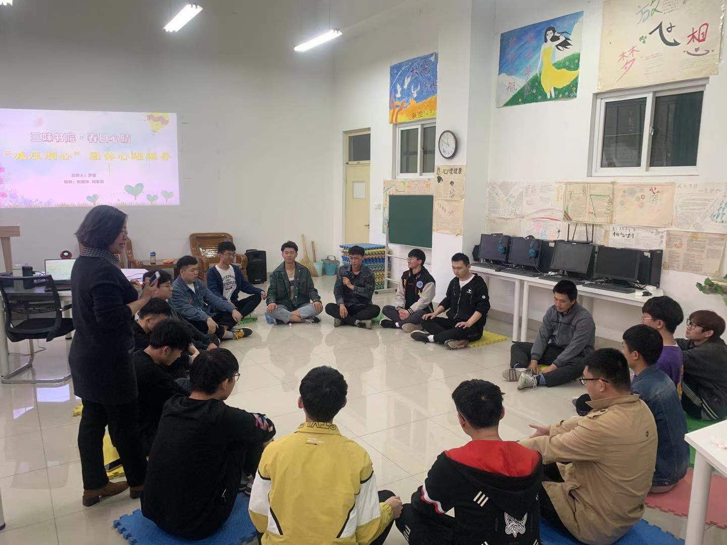 为了缓解专升本学生的考试压力,4月24日,三味书院在大学生心理健康教育中心举办了“春日心晴减压润心”团体心理辅导活动。活动由书院心理辅导老师罗磊主持,2018级部分专本班学生参加。